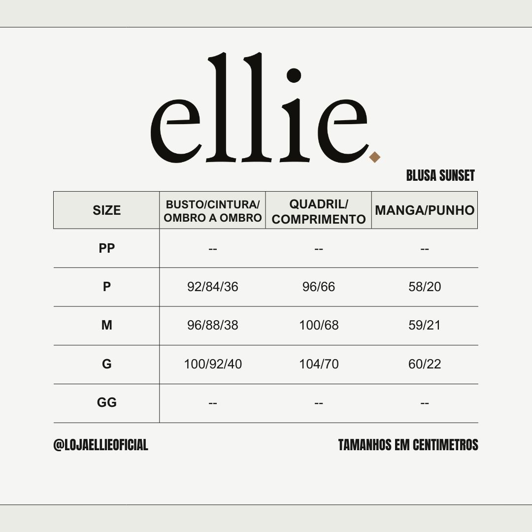 A Blusa Sunset Ellie é leve, versátil e perfeita para composições elegantes e frescas. Com modelagem soltinha e tecido leve, ela proporciona conforto absoluto sem abrir mão do estilo.