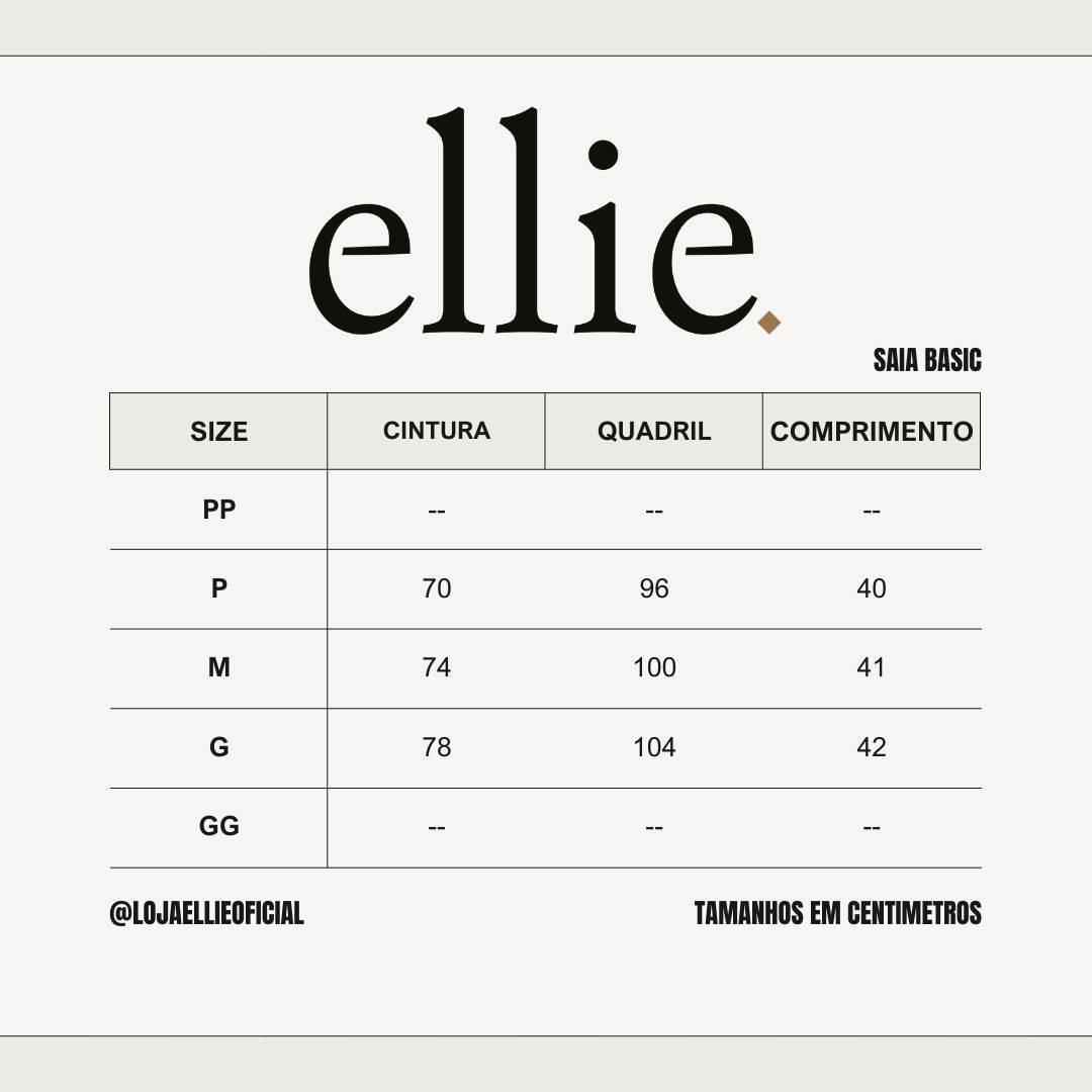 A Saia Basic Ellie é aquela peça essencial que une praticidade, elegância e versatilidade. Com design minimalista e modelagem reta, ela garante um caimento elegante e atemporal, perfeito para diversas ocasiões.